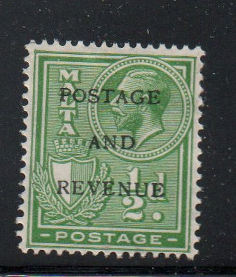 Malta Sc 149 1928 1/2d brown POSTAGE AND REVENUE overprint stamp mint