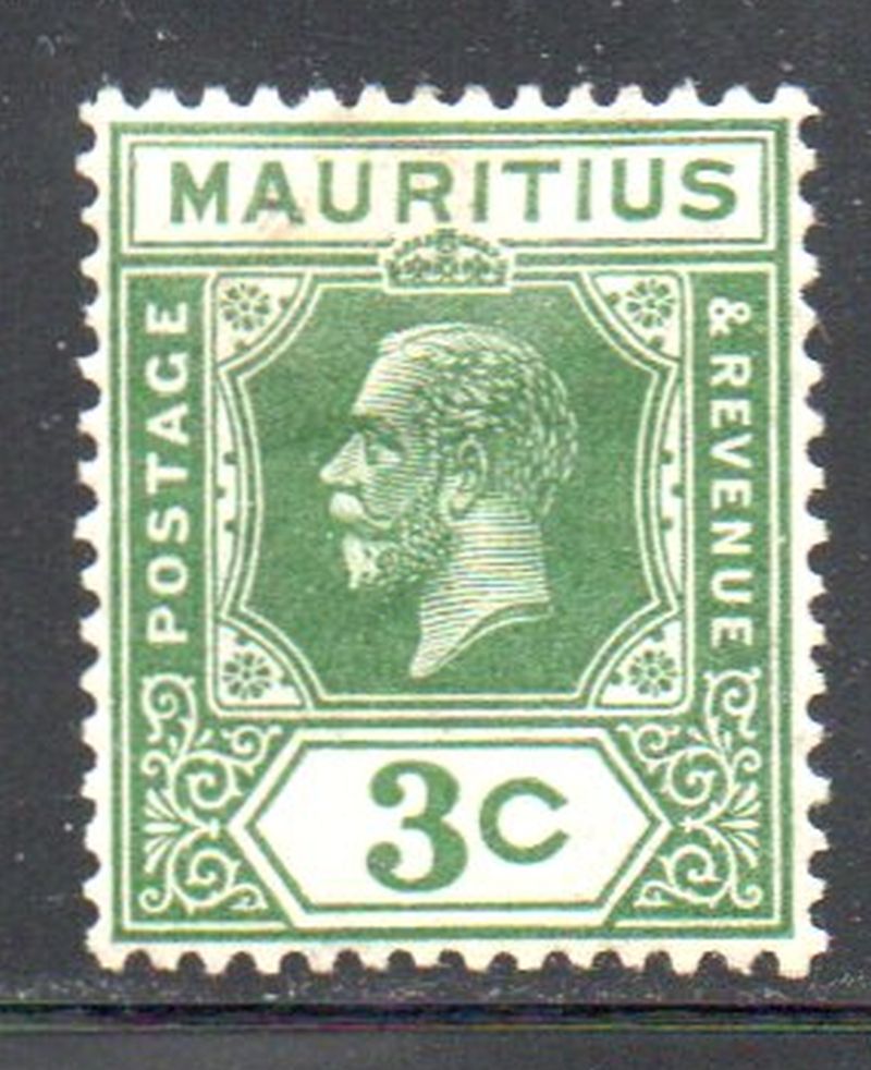 Mauritius Scott Catalogue number 181 1922 3 cent green George VI stamp .
