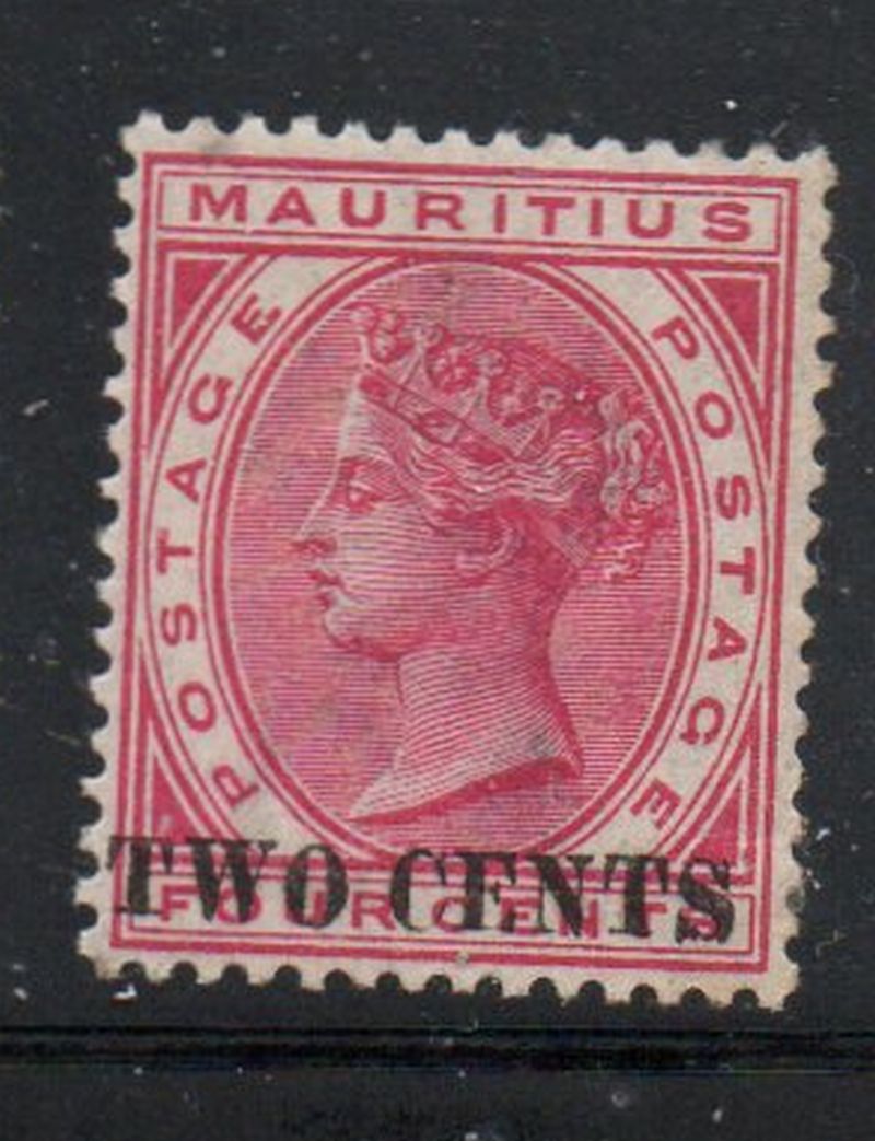 Mauritius Scott Catalogue number 88 1891 TWO CENTS overprint on 4 cent rose Victoria stamp.