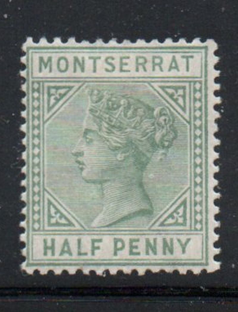 Montserrat Scott Catalogue number 5 1884 Half Penny green Victoria stamp.Mint, very good to fine, original gum hinged Member Canadian Stamp Dealers Association . Canadian Customers - I pay the GST/HST on your purchases from me .25-4-71.jpg