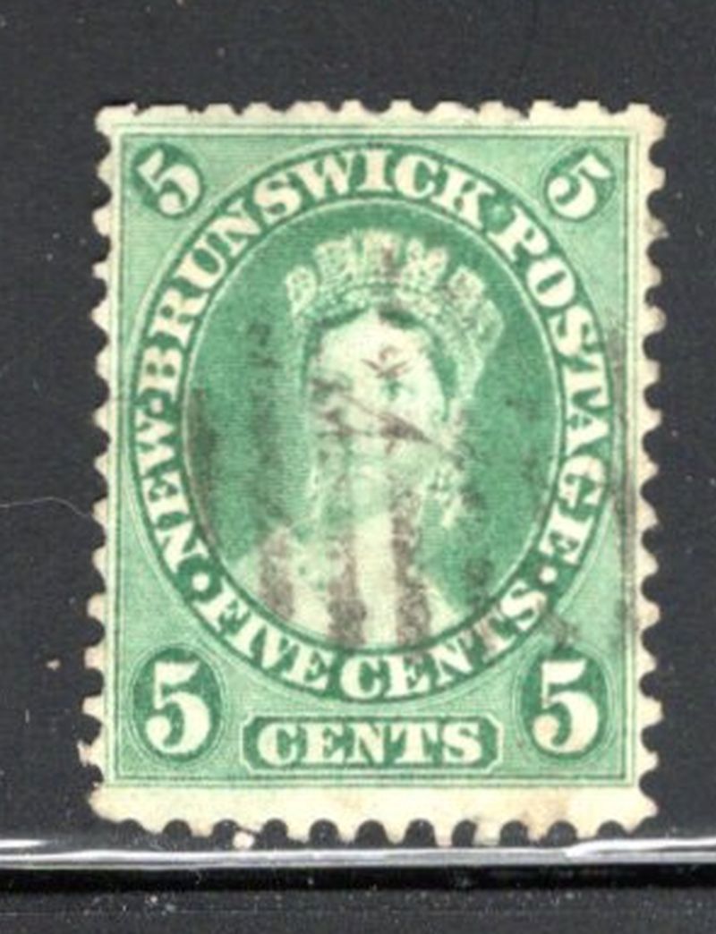 New Brunswick Scott & Unitrade Catalogue number 8 1860 8 cent yellow green Victoria stamp .