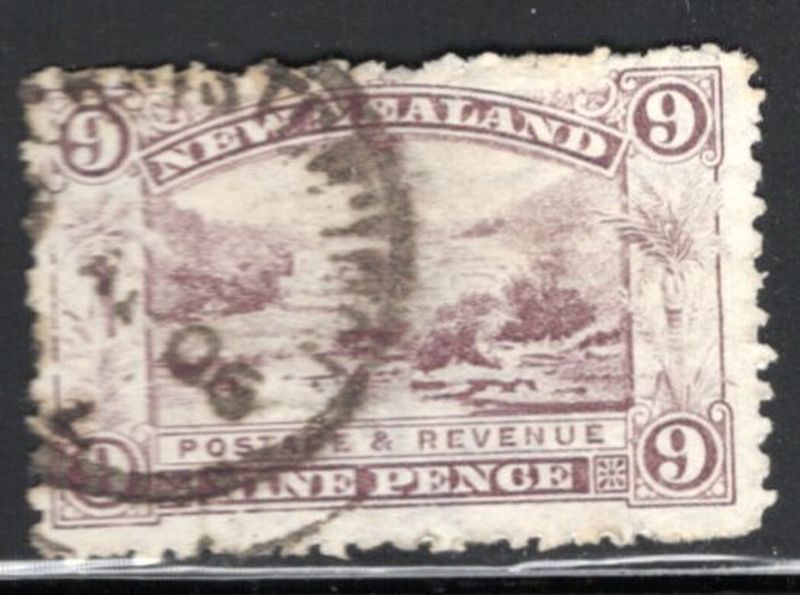 New Zealand Scott Catalogue number 80 1898 9d lilac Pink Terrace Rotohnana stamp usedUsed, verry good.Canadian Customers - I pay the GST/HST for youMember Canadian Stamp Dealers Association br26-3-51.jpg