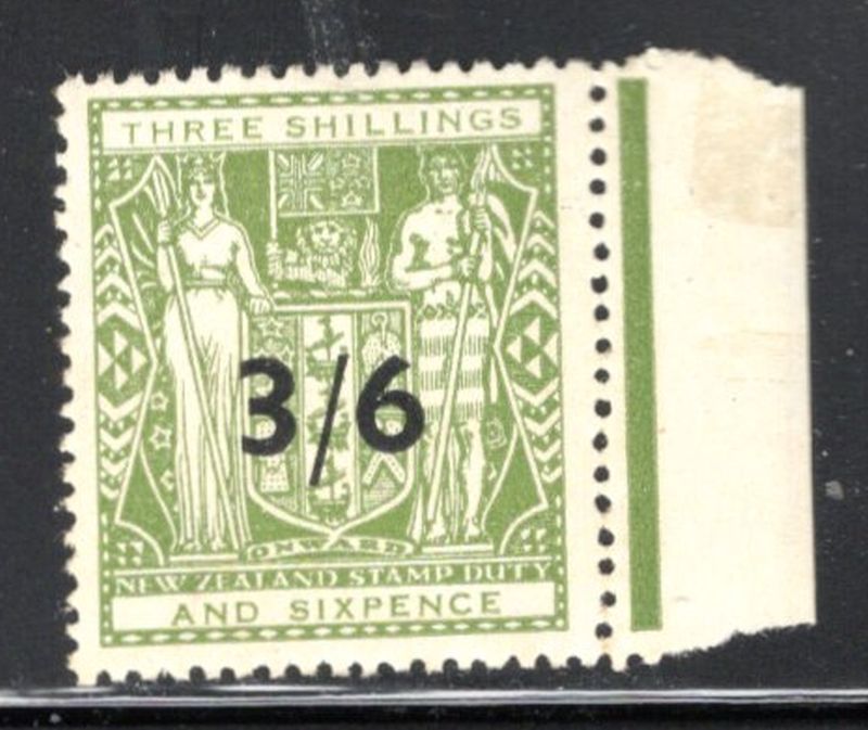 New Zealand Scott Catalogue number AR99 1953 3 shilling 6 d Postal-fiscal Coat of Arms stamp.Mint, fine original gum never hingedCanadian Customers - I pay the GST/HST for youMember Canadian Stamp Dealers Association br26-3-52.jpg