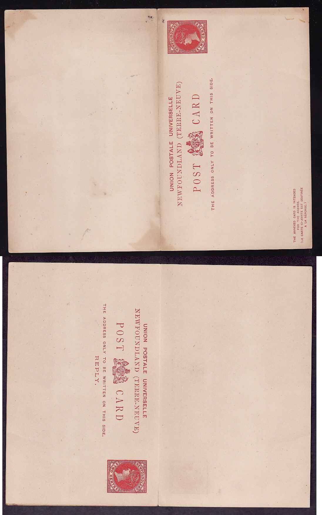 Scan #10429 - 2c + 2c reply card , carmine buff post card [P6], die I - unused -