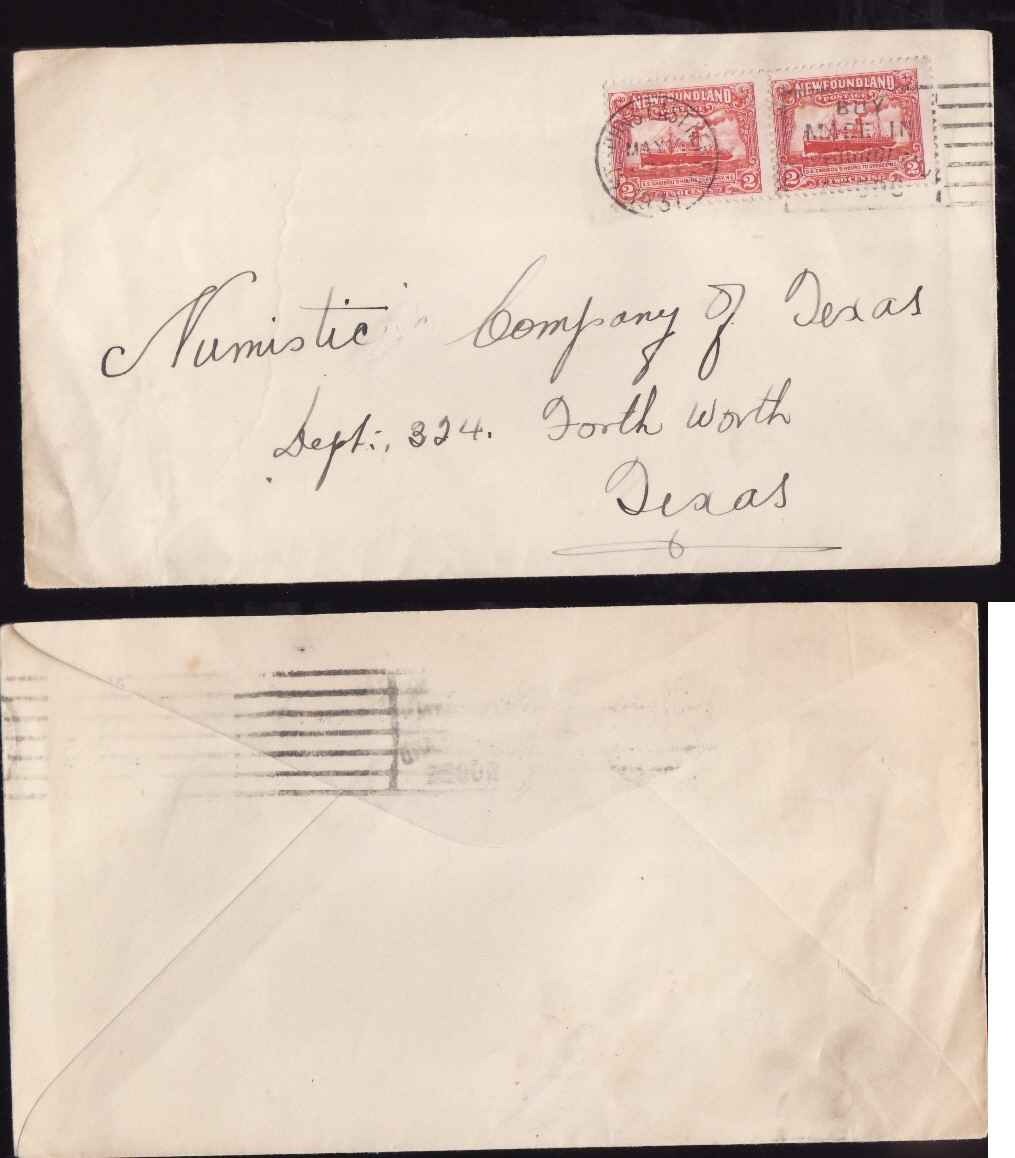 Newfoundland cover- id80-2c(2) Steamship to USA-St John's East-May 23 1931-slogan "Buy Made in Newfoundland Goods" - partial line under the time in the hub dater-