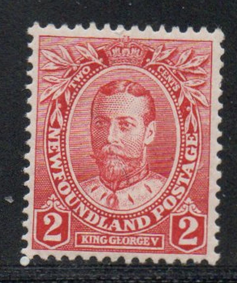 Newfoundland Scott & Unitrade Catalogue number 105 1911 2 cent carmine George V stamp .Mint, fine, original gum hinged .Canadian Customers - I pay the GST/HST on your purchases from me .23-11-7.jpg
