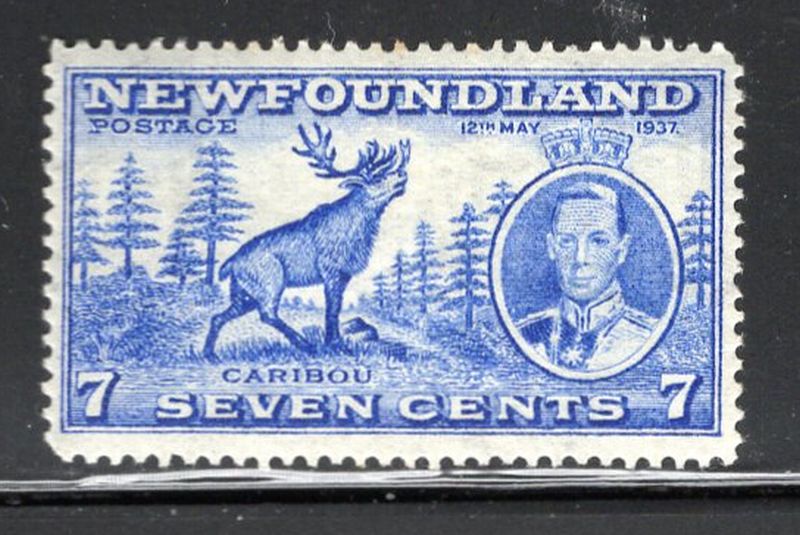 Newfoundland Scott & Unitrade Catalogue number  235 1937 7 c bright ultramarine Caribou  &  George VI stamp. Mint, very good to very fine, original gum hinged .Canadian Customers - no added GST/HSTUS customers - No tariffs on stamps sent by meMember Canadian Stamp Dealers Associationbr26-3-17.jpg