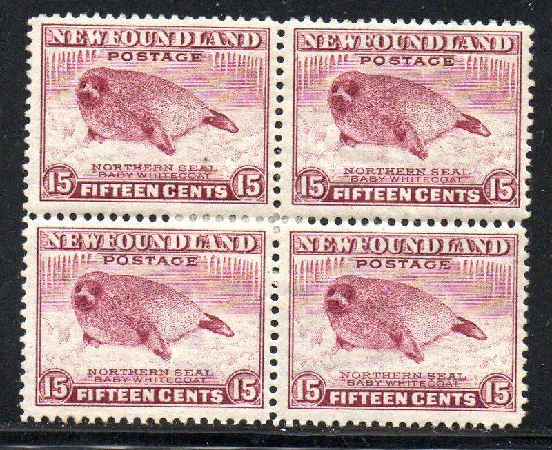 Newfoundland Scott & Unitrade Catalogue number 262 1941 15 cent pale rose violet Seal stamp block of 4 .