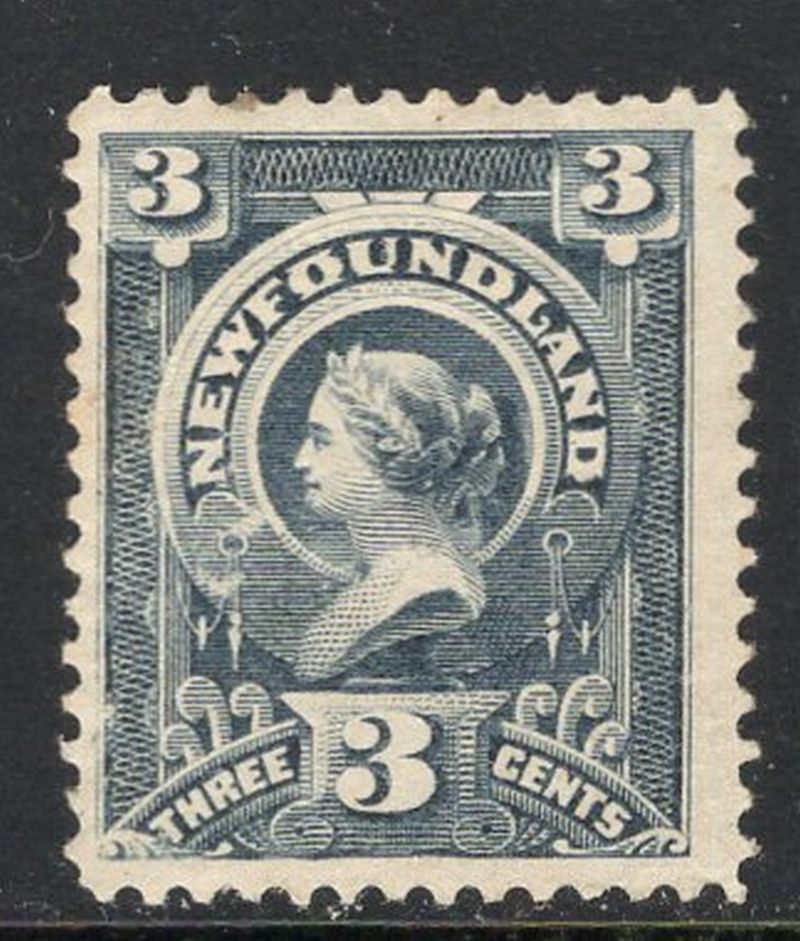Newfoundland Scott & Unitrade Catalogue number 60 1890 3 cent slate Victoria stamp.Mint, fine to fine plus, original gum hinged.Canadian Customers - no added GST/HSTUS customers - No tariffs on stamps sent by meMember Canadian Stamp Dealers Association.br26-4-39.jpg