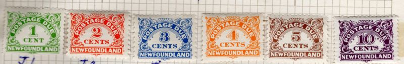 Newfoundland Scott & Unitrade Catalogue number J1-J6 1939 Postage Due stamp set.