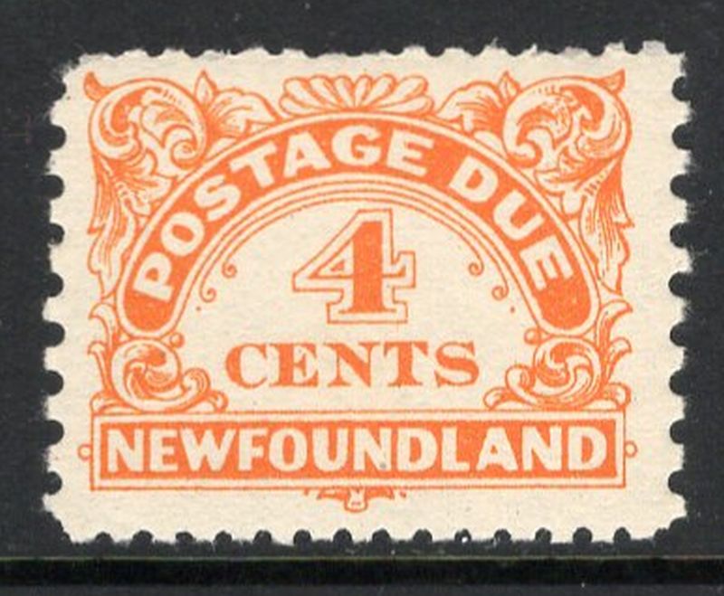 Newfoundland Scott & Unitrade Catalogue number J4 1939 4 cent yellow orange postage dur stamp. Mint, fine, original gum hinged .Canadian Customers - no added GST/HSTUS customers - No tariffs on stamps sent by meMember Canadian Stamp Dealers Association.br26-4-46.jpg