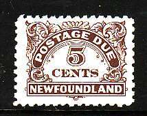 Newfoundland-Sc#J5- id7-unused NH 5c Postage Due-1939-Member of the Canadian Stamp Dealers Association and have been serving the collector since 1975.Canadian buyers - I will cover your GST/HST costs .