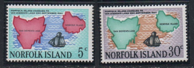 Norfolk Islands Scott Catalogue number 123-124 1968 Maps of Tasmania and Norfolk Island stamp set .