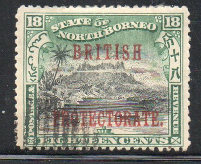 North Borneo Scott Catalogue number 113 1901 18 cent Mountain stamp with British Protectorate overprint stamp.