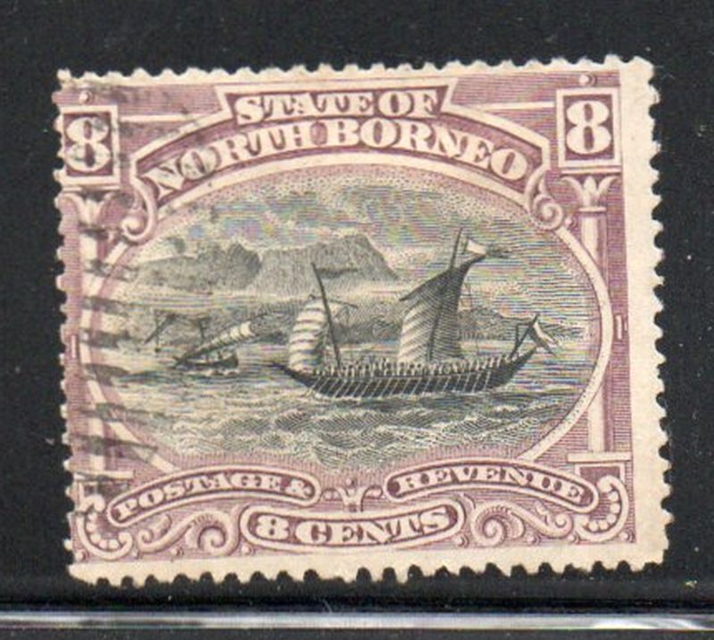 North Borneo Scott Catalogue number 64 1884 8 cent Malay Dhow stamp.Used, very good to fine.Canadian Customers - no added GST/HSTUS customers - No tariffs on stamps sent by meMember Canadian Stamp Dealers Association26-3-8.jpg