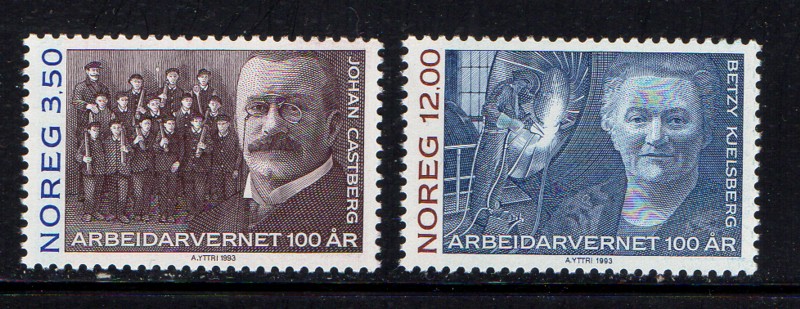 Norway Scott Catalogue number 1044-1045 1993 100th Workers Organization stamp set .Mint, fine to very fine, original gum never hinged .Member Canadian Stamp Dealers Association .Canadian Customers - I pay the GST/HST on your purchases from me .