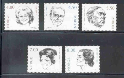 Norway Scott Catalogue number 1277-1281 2001 Actprs & Actresses stamp set .