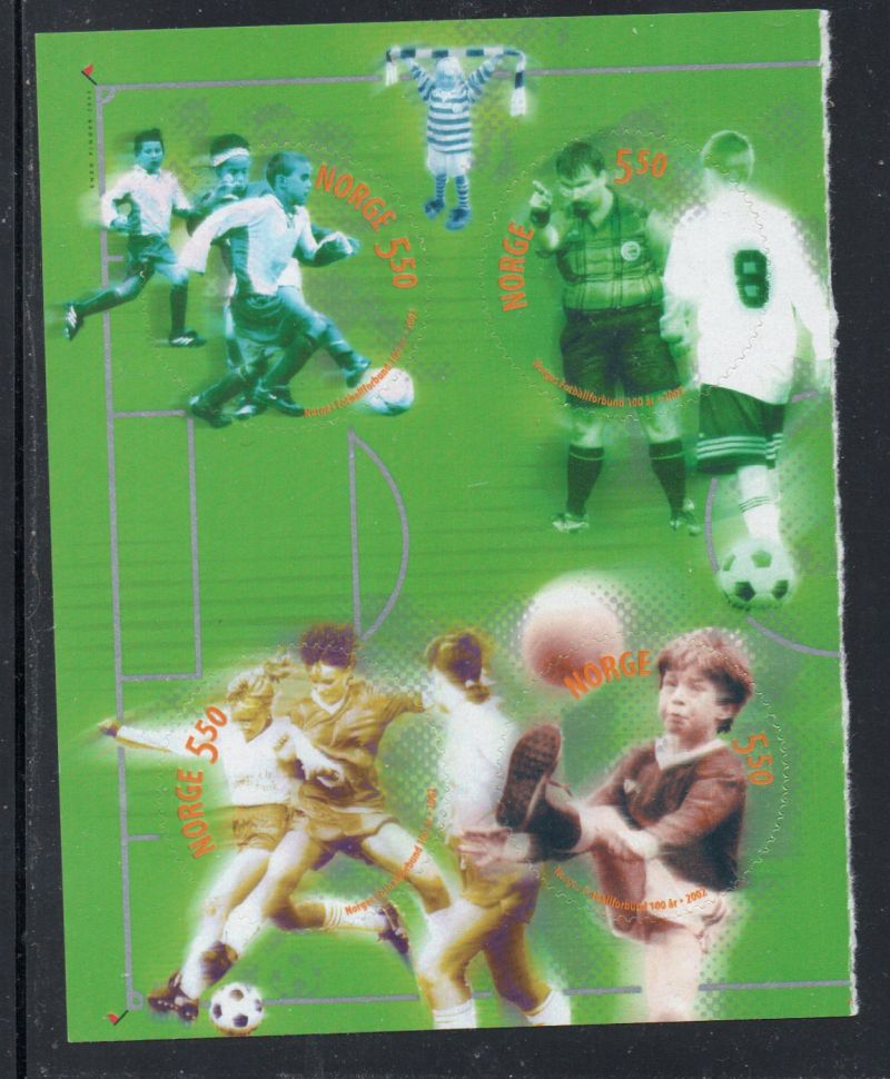 Norway  Scott Catalogue number 1331 2002 100th Anniversary Soccer Association stamp  booklet pane . Mint, fine to very fine, original gum, never hinged.Member Canadian Stamp Dealers Association .Free Shipping on purchases over $50 going to North America.Canadian Customers - I pay the GST/HST on your purchases from me .
