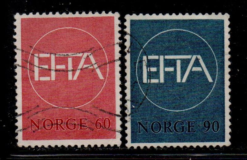 Norway Scott Catalogue number 500-501 1967 EFTA  stamp set .Used, fine to very fine .Member Canadian Stamp Dealers Association .Free Shipping on purchases over $50 going to North America.Canadian Customers - I pay the GST/HST on your purchases from me .