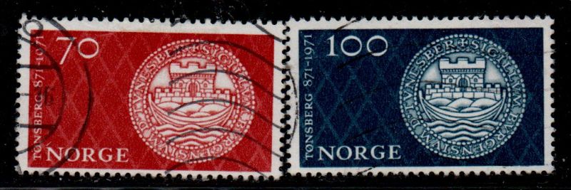 Norway Scott Catalogue number  568-569 1971 1100th Anniversary City of Tonsberg stamp set .Used, fine to very fineMember Canadian Stamp Dealers Association .Free Shipping on purchases over $50 going to Canada or the USA .Canadian Customers - I pay the GST/HST on your purchases from me .