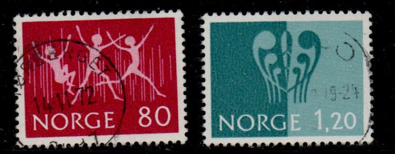 Norway Scott Catalogue number 592-593 1972 INTERJUNEX 72 Philateic Exhibition stamp set .