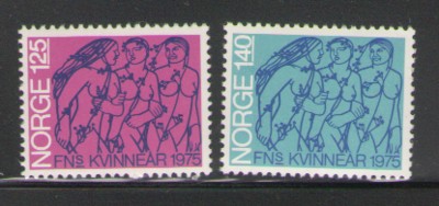 Norway Scott Catalogue number 649-650 1975 International Women's Year stamp set .Mint, fine to very fine, original gum never hinged.Member Canadian Stamp Dealers Association .Canadian Customers - I pay the GST/HST on your purchases from me .