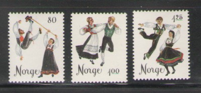 Norway Scott Catalogue number 67-672 1976 Folk Costumes & Dances stamp set .Mint, fine to very fine, original gum never hinged.Member Canadian Stamp Dealers Association .Canadian Customers - I pay the GST/HST on your purchases from me .