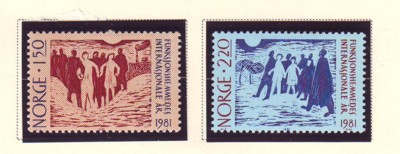 Norway  Scott Catalogue number 790-791 1981 International Year of the Disabled stamp set .Mint, fine to very fine, original gum never hinged.Member Canadian Stamp Dealers Association .Free Shipping on purchases over $50 going to North America.Canadian Customers - I pay the GST/HST on your purchases from me .