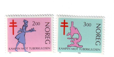 Norway  Scott Catalogue number 802-803 1982 Tuberculosis stamp set .Mint, fine to very fine, original gum never hinged.Member Canadian Stamp Dealers Association .Free Shipping on purchases over $50 going to North America.Canadian Customers - I pay the GST/HST on your purchases from me .