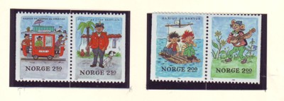Norway  Scott Catalogue number 850-853 1984 Illustrations for Egner's  Children's Stories stamp set .Mint, fine to very fine, original gum never hinged.Member Canadian Stamp Dealers Association .Free Shipping on purchases over $50 going to North America.Canadian Customers - I pay the GST/HST on your purchases from me .