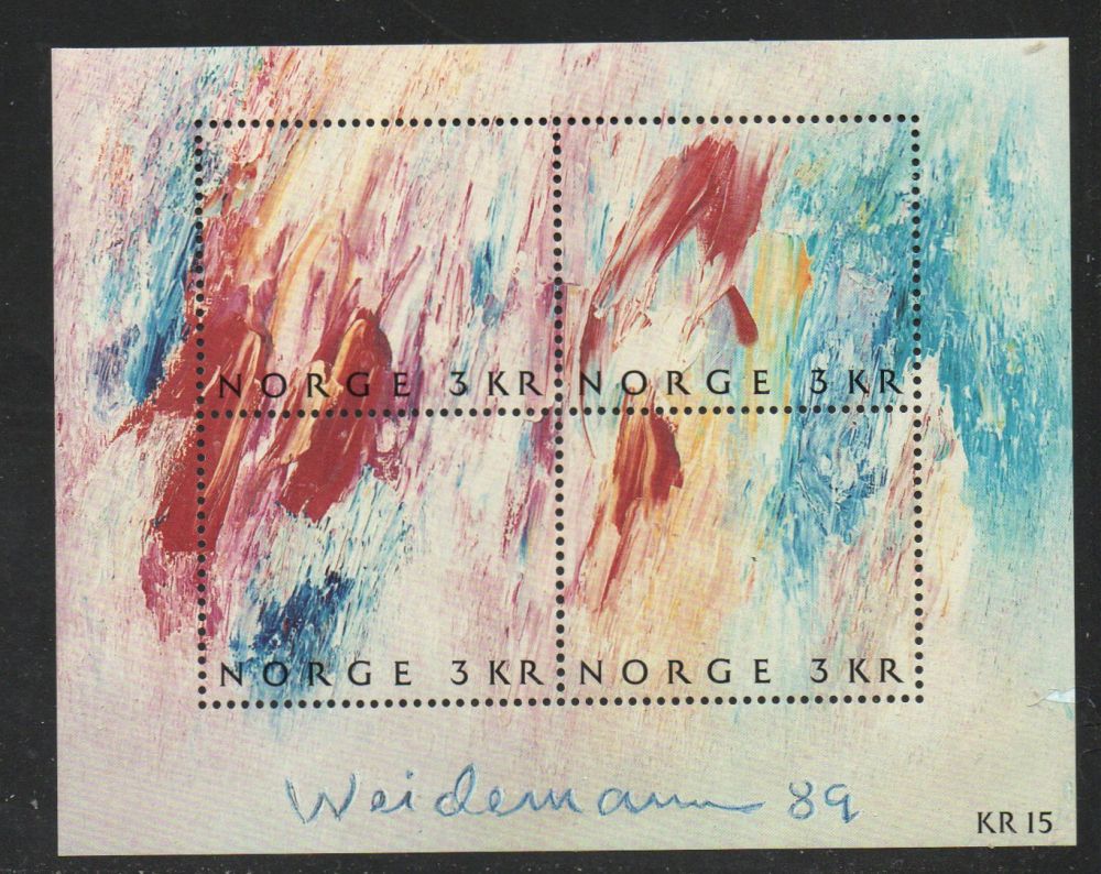 Norway Scott Catalogue number 947 1989 Stamp Day Painting stamp sheet .