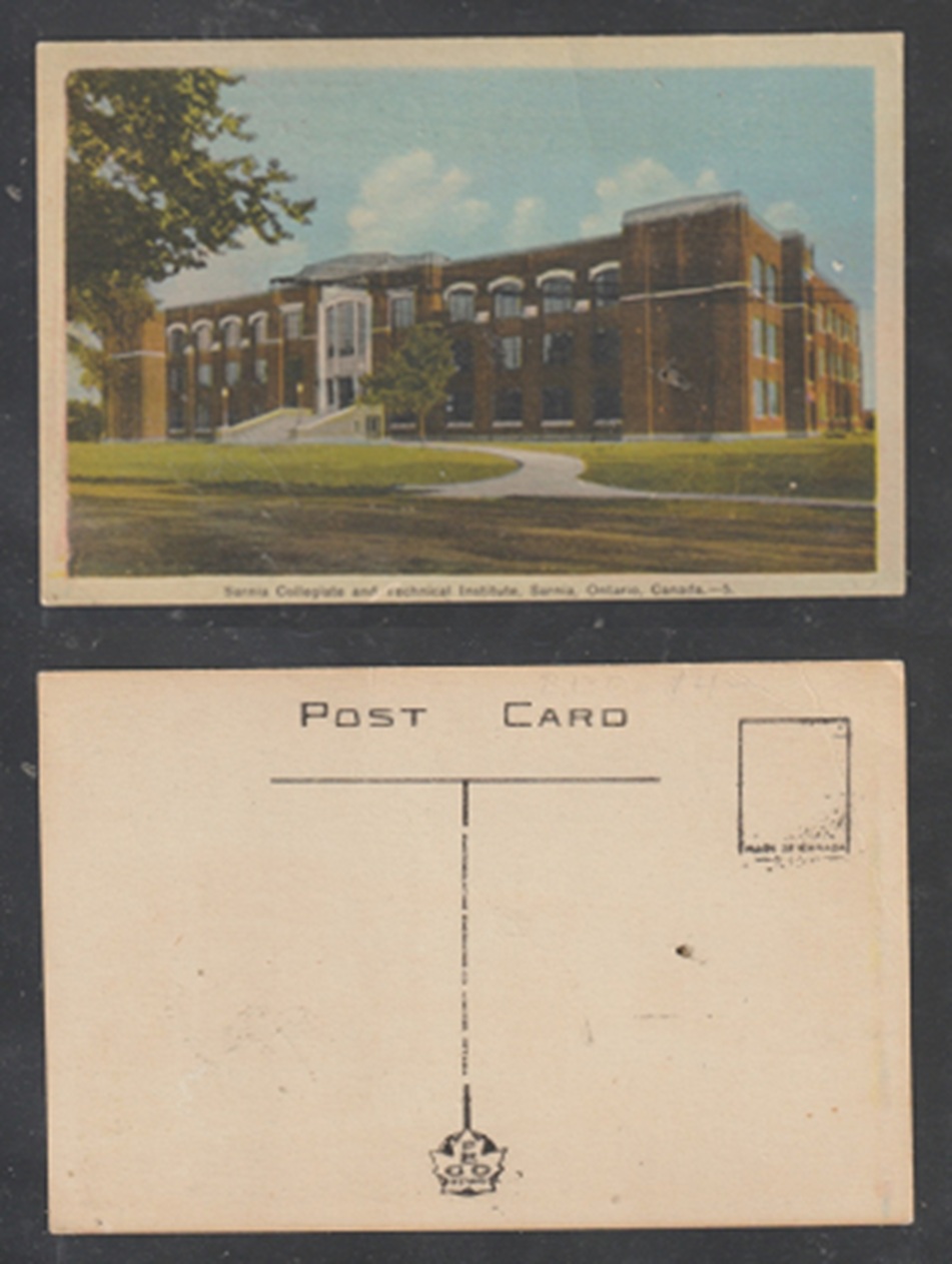 Sarnia Ontario (Lambton County) Postcard Sarnia Collegiate and Technical Instituteunposted - standard size - colour - white border - divided backPublisher:: Photogelatine Engraving Co. Ltd. TorontoPostcard is in Very Good / Excellent condition