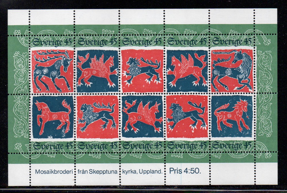 Sweden Scott Catalogue number  1101 1974 Church Quilt stamp souvenir sheet .Mint, fine to very fine original gum never hinged  .Member Canadian Stamp Dealers AssociationCanadian Customers - No added GST/HST .US customers - There is no tariff on postage stamps that I send to you.