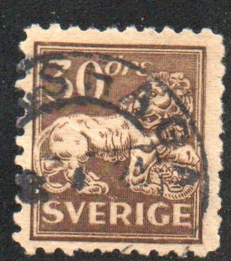 Sweden Scott Catalogue number 129 1920 300re brown Lion perf 10 no watermark stamp.