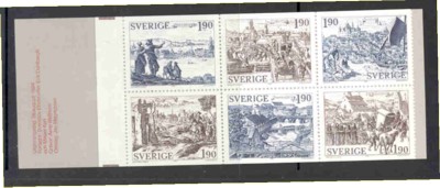 Sweden Scott Catalogue number 1513a 1984 Medieval Town stamp booklet pane in complete booklet .
