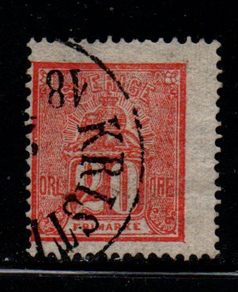 Sweden Scott Catalogue number 16 1866 20 ore vermilion Lion & Coat of Arms stamp .Used, fine .Member Canadian Stamp Dealers AssociationFree shipping on purchases over $50 going to North America .Canadian Customers - I pay the GST/HSt on your purchases from me .22-1-128.jpg