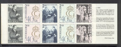 Sweden Scott Catalogue number 1600a 1986 40th Birthday King stamp booklet pane in complete booklet.Mint, fine to very fine original gum never hinged .Canadian Customers - I pay the GST/HST on your purchases from me .
