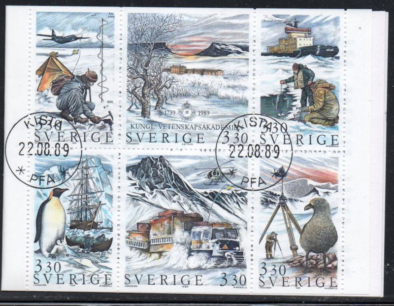 Sweden Scott Catalogue number 1754a 1989 Polar Exploration stamp booklet pane in complete bookletUsed, fine to very fine .Member Canadian Stamp Dealers Association .Canadian Customers - No added GST/HST on your purchases from me .