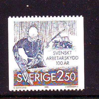 Sweden Scott Catalogue number 1809 1990 Industrial Safety stamp .Mint, fine to very fine, original gum never hinged .Canadian Customers - no added GST/HSTUS customers - No tariffs on stamps sent by meMember Canadian Stamp Dealers Association