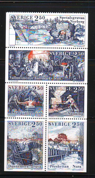 Sweden Scott Catalogue number 1898-1903 1991 Iron Mining stamp setMint, fine to very fine, original gum never hinged .Canadian Customers - no added GST/HSTUS customers - No tariffs on stamps sent by meMember Canadian Stamp Dealers Association