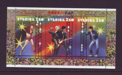 Sweden  Scott Catalogue number 1909a 1991 Rock Musician stamp  booklet pane .Mint, fine to very fine, original gum never hinged .Canadian Customers - no added GST/HSTUS customers - No tariffs on stamps sent by meMember Canadian Stamp Dealers Association