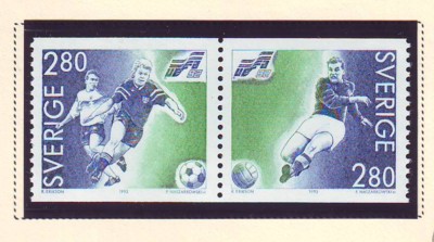 Sweden  Scott Catalogue number 1941-1942 1992 European Soccer Championships stamp set .Mint, fine to very fine, original gum never hinged .Canadian Customers - no added GST/HSTUS customers - No tariffs on stamps sent by meMember Canadian Stamp Dealers Association