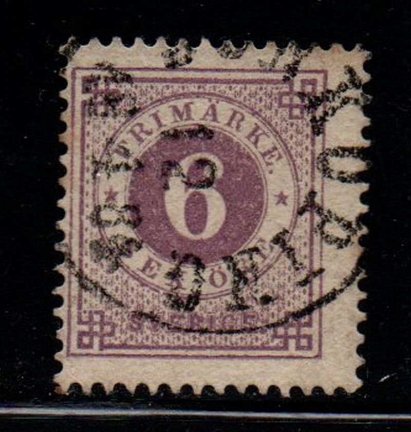 Sweden Scott Catalogue number 20 1882 6 ore violet numeral of value stamp .Used, very good to fine .Member Canadian Stamp Dealers AssociationFree shipping on purchases over $50 going to North America .Canadian Customers - I pay the GST/HSt on your purchases from me .22-1-129.jpg