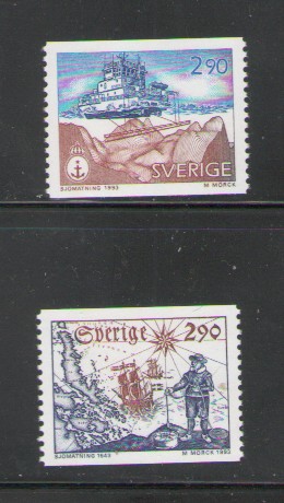 Sweden Scott Catalogue number 2032-2033 1993 Hydrographic Survey stamp set .