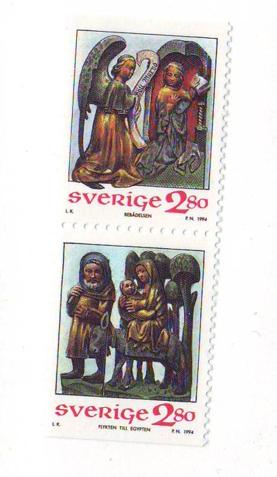 Sweden Scott Catalogue number 2105-2106 1994 Christmas stamp set .Mint, fine to very fine original gum never hinged .Canadian Customers - no added GST/HSTUS customers - No tariffs on stamps sent by meMember Canadian Stamp Dealers Association