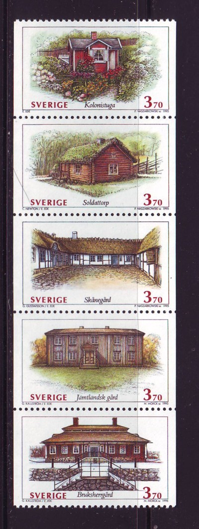 Sweden Scott Catalogue number 2113a 1995 Houses stamp booklet paneMint, fine to very fine original gum never hinged .Canadian Customers - no added GST/HSTUS customers - No tariffs on stamps sent by meMember Canadian Stamp Dealers Association