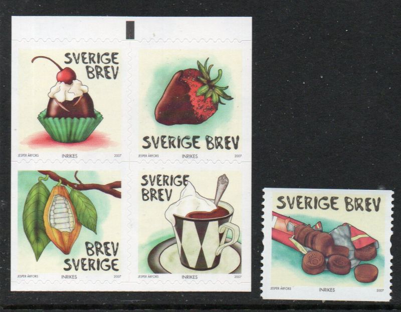 Sweden Scott Catalogue number 2566-2567 2007 Chocolate stamp set .Mint, fine to very fine original gum never hinged .Member Canadian Stamp Dealers Association .Canadian Customers - I pay the GST/HST on your purchases from me ..