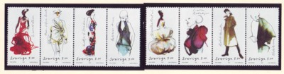 Sweden Scott Catalogue number 2568a-h 2007 Swedish Fashion stamp set .Mint, fine to very fine original gum never hinged .Member Canadian Stamp Dealers Association .Canadian Customers - I pay the GST/HST on your purchases from me ..