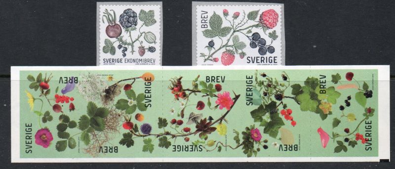 Sweden Scott Catalogue number 2733-2735 2014 Berries & Leaves stamp set .Mint, fine to very fine original gum never hinged .Member Canadian Stamp Dealers Association .Canadian Customers - I pay the GST/HST on your purchases from me ..