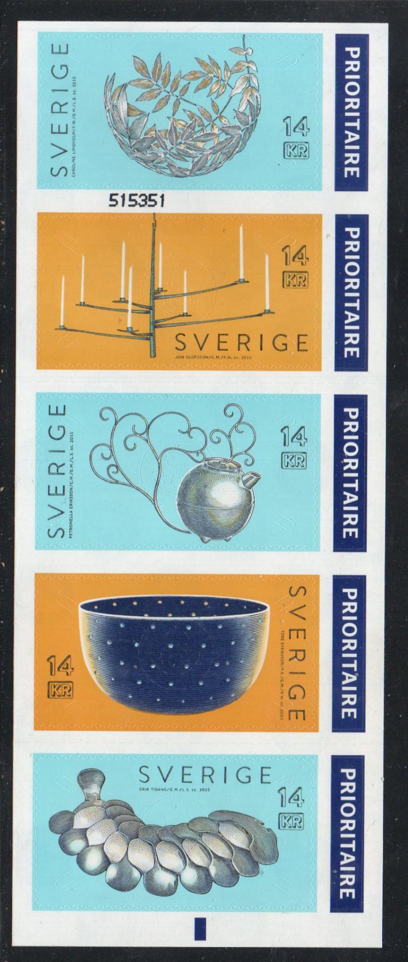 Sweden Scott Catalogue number 2762  2015 Items made by Blacksmiths & Silversmiths stamp set .Mint, fine to very fine original gum never hinged  .Member Canadian Stamp Dealers Association .Canadian Customers - I pay the GST/HST on your purchases from me ..
